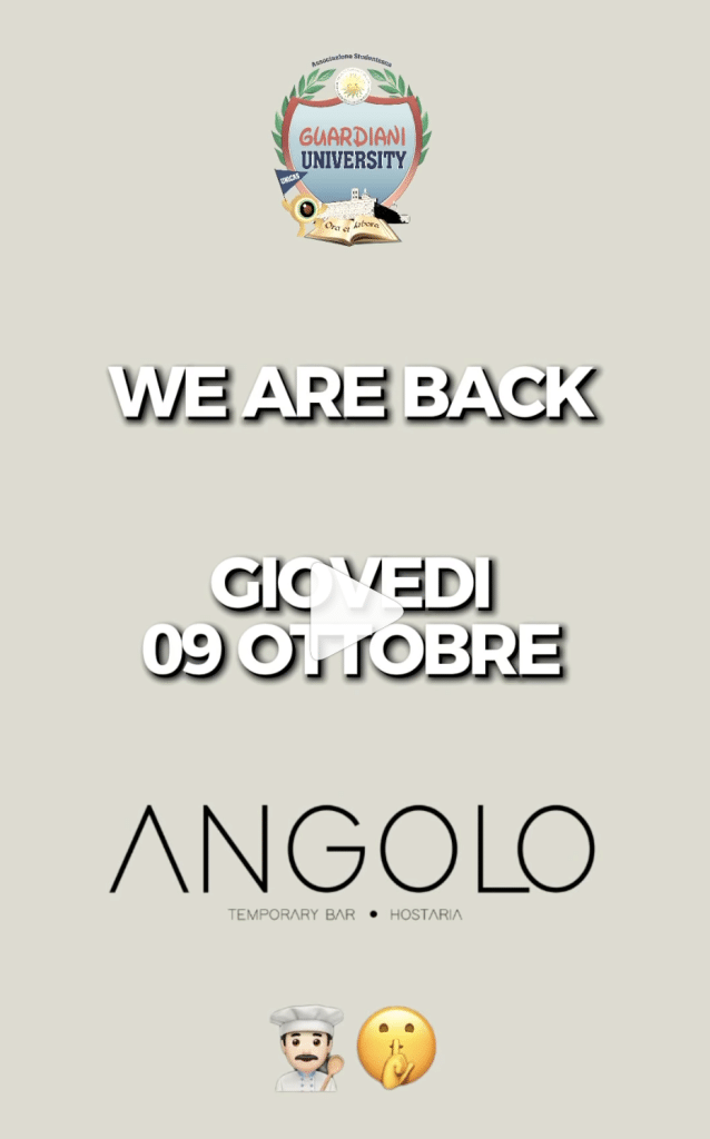 Giovedì Universitario | The night of Unicas students Place: Angolo | Via del Carmine, 26, 03043 Cassino FR Start: 22:00 Oct 9, 2025 Guardiani List…